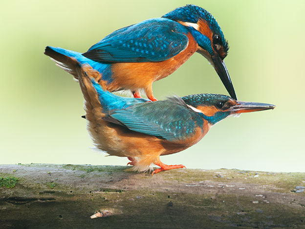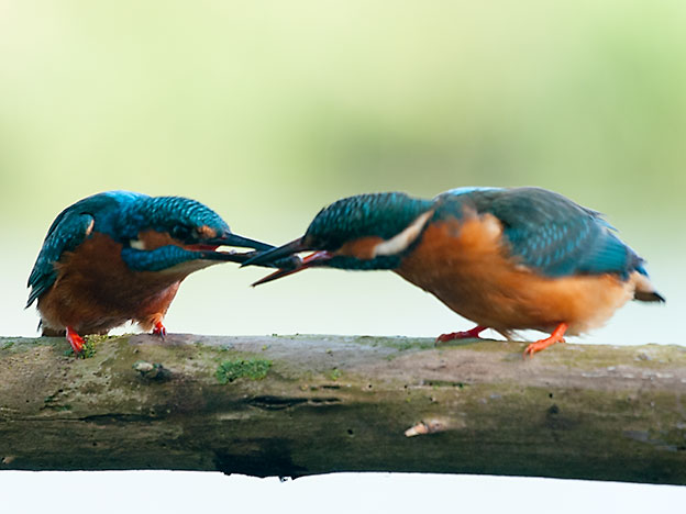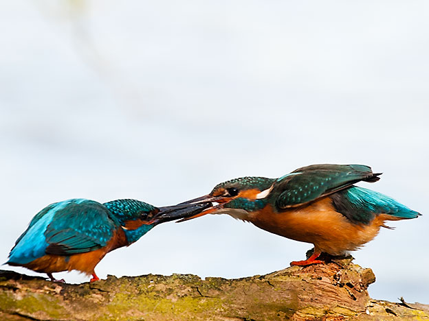 Het mannetje probeert de pop te versieren door haar een visje aan te bieden, met de kop van het visje naar voren. Als de romances lukken dan kan er een paring op volgen.